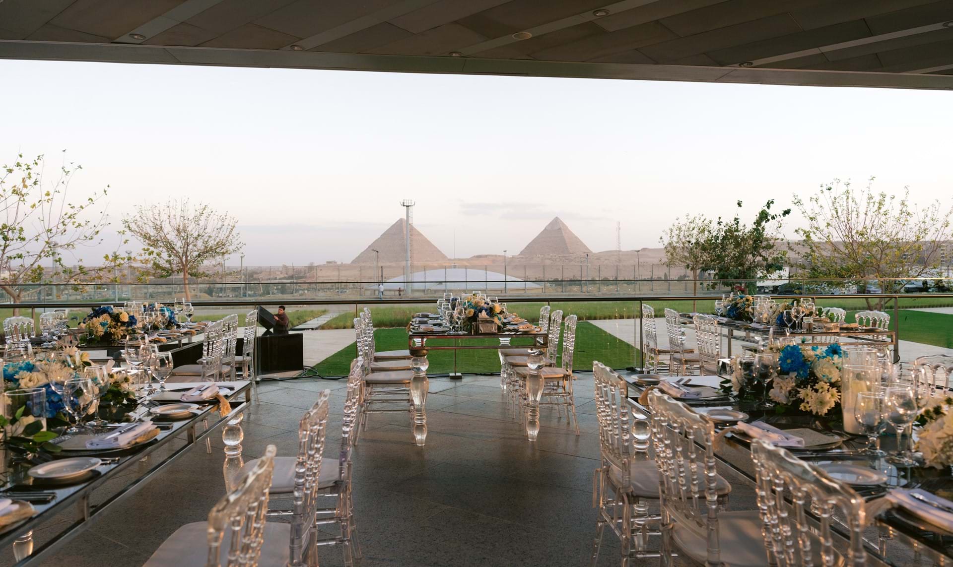 Host your event in one of the most breathtaking settings imaginable. The Pyramids Panorama Space is an open-air venue offering sweeping views of the Giza Pyramids on one side and the iconic Grand Egyptian Museum on the other. Ideal for elegant gatherings, private receptions, and special celebrations, this distinctive space combines atmosphere, prestige, and an unforgettable backdrop, perfect for creating truly memorable moments.